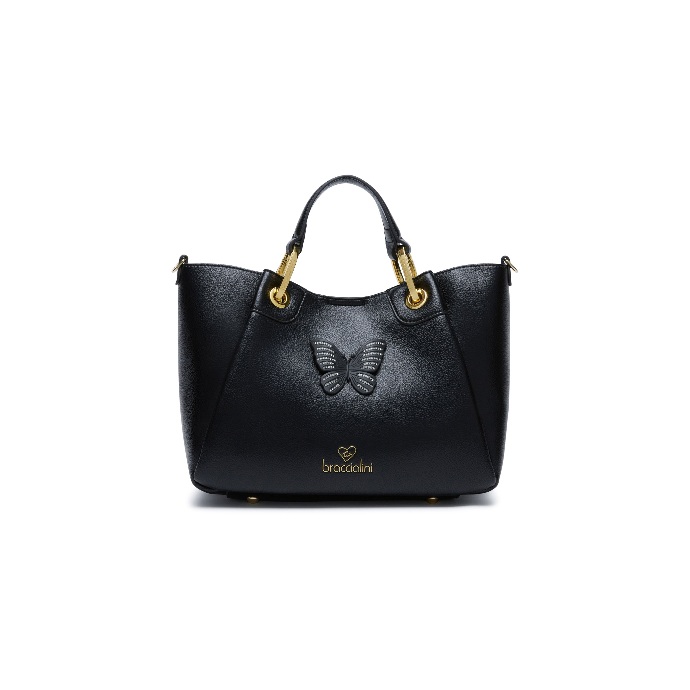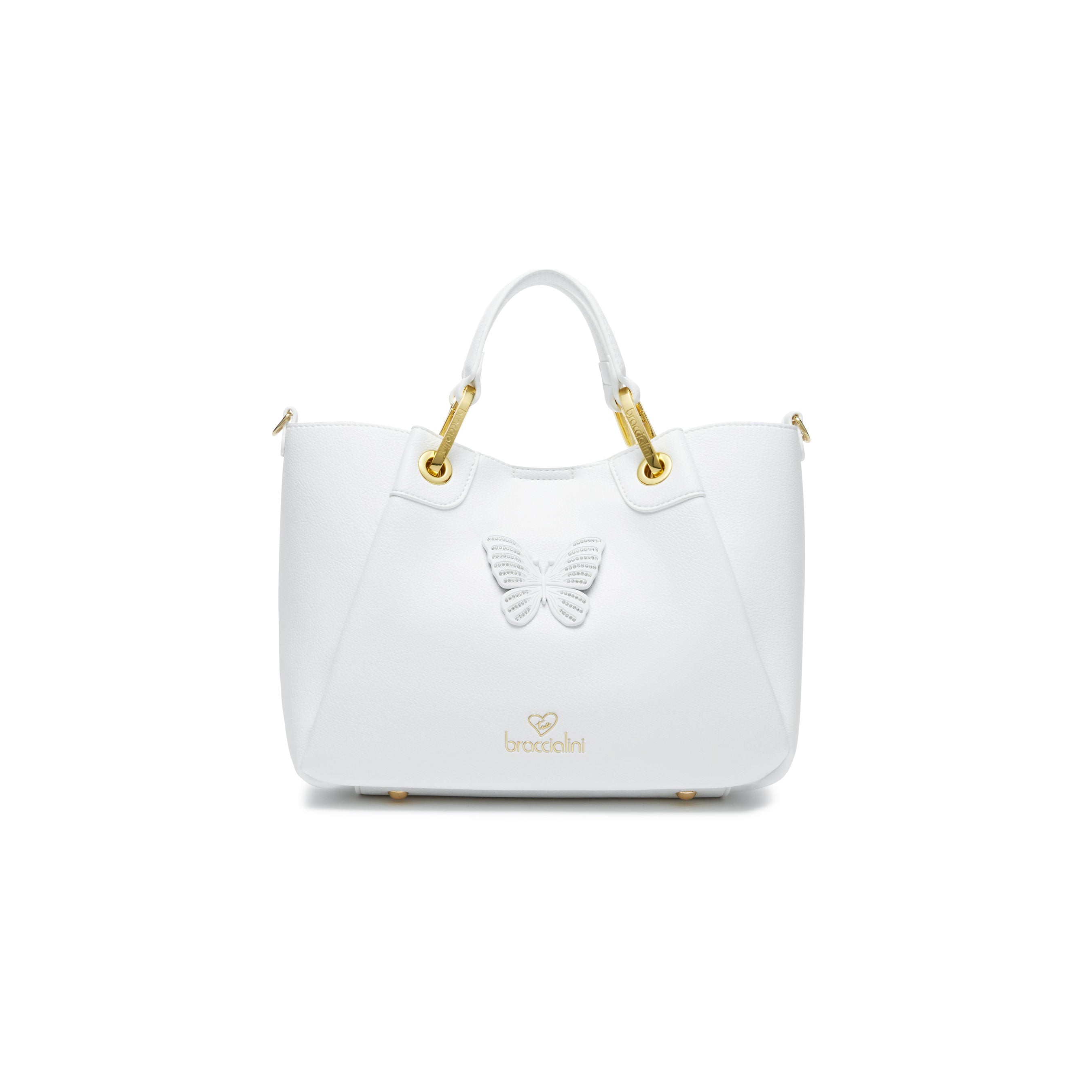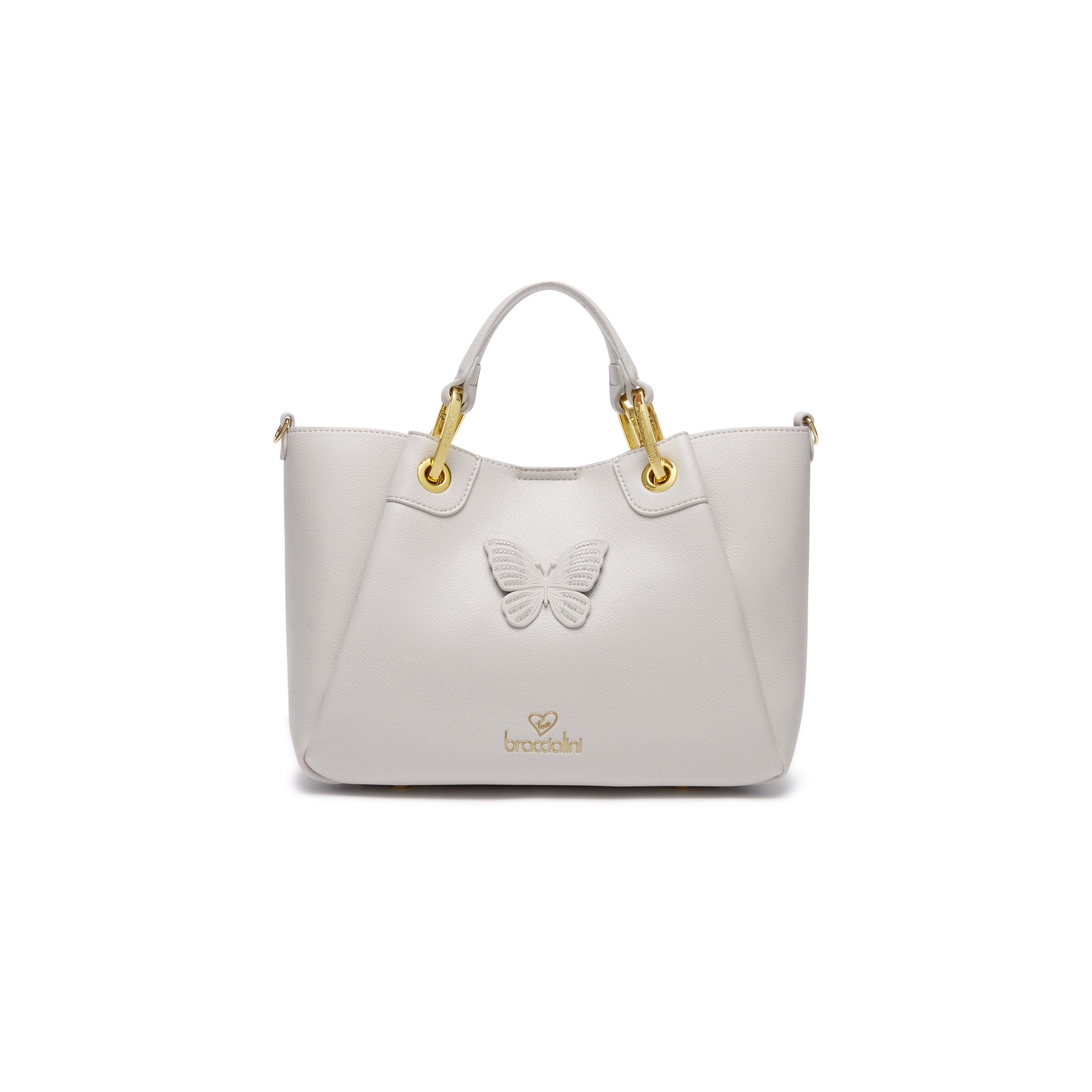 Borsa a Mano in Similpelle con Farfalla Tono su Tono e Tracolla Regolabile