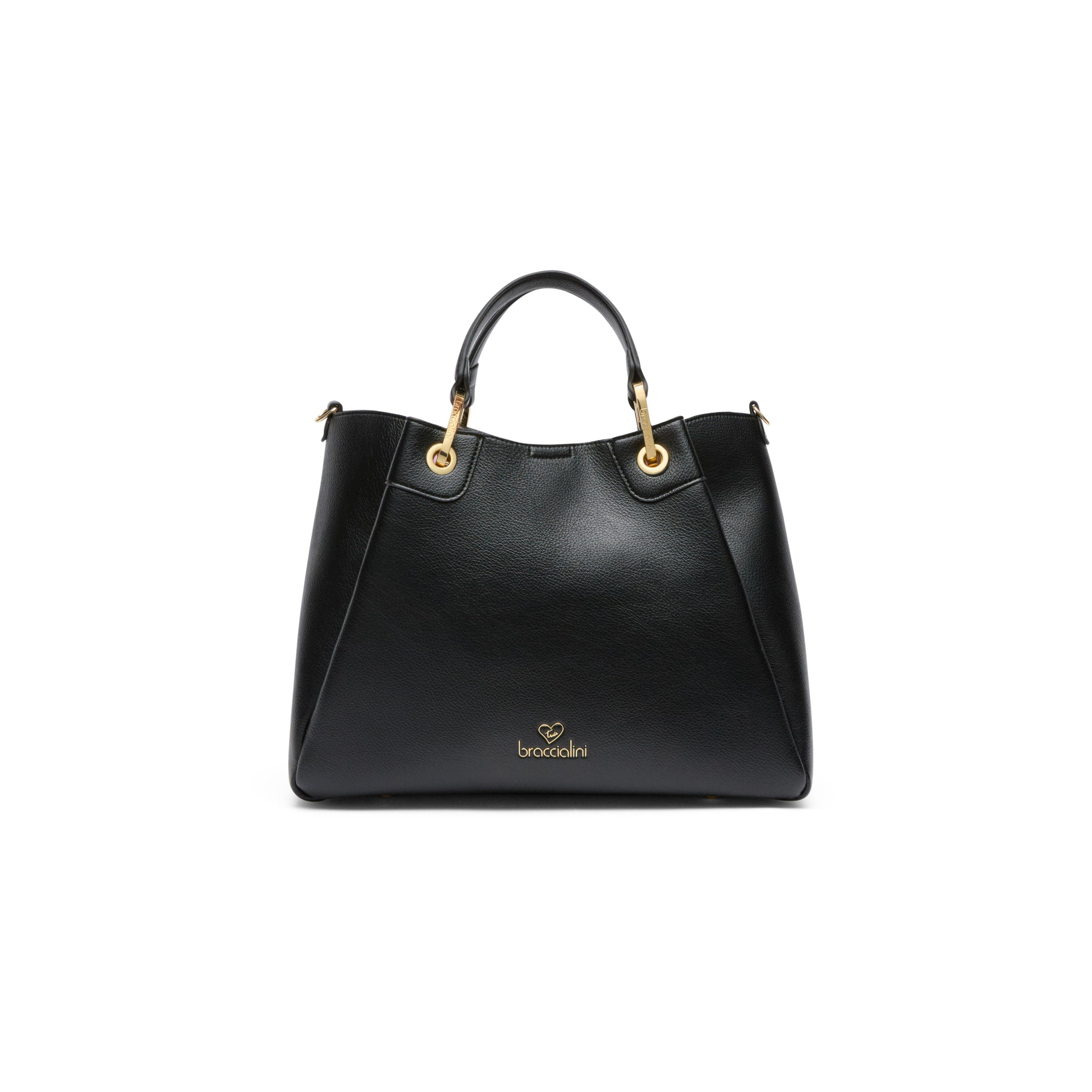 Borsa a Mano in Similpelle con Dettagli Dorati e Tracolla Regolabile
