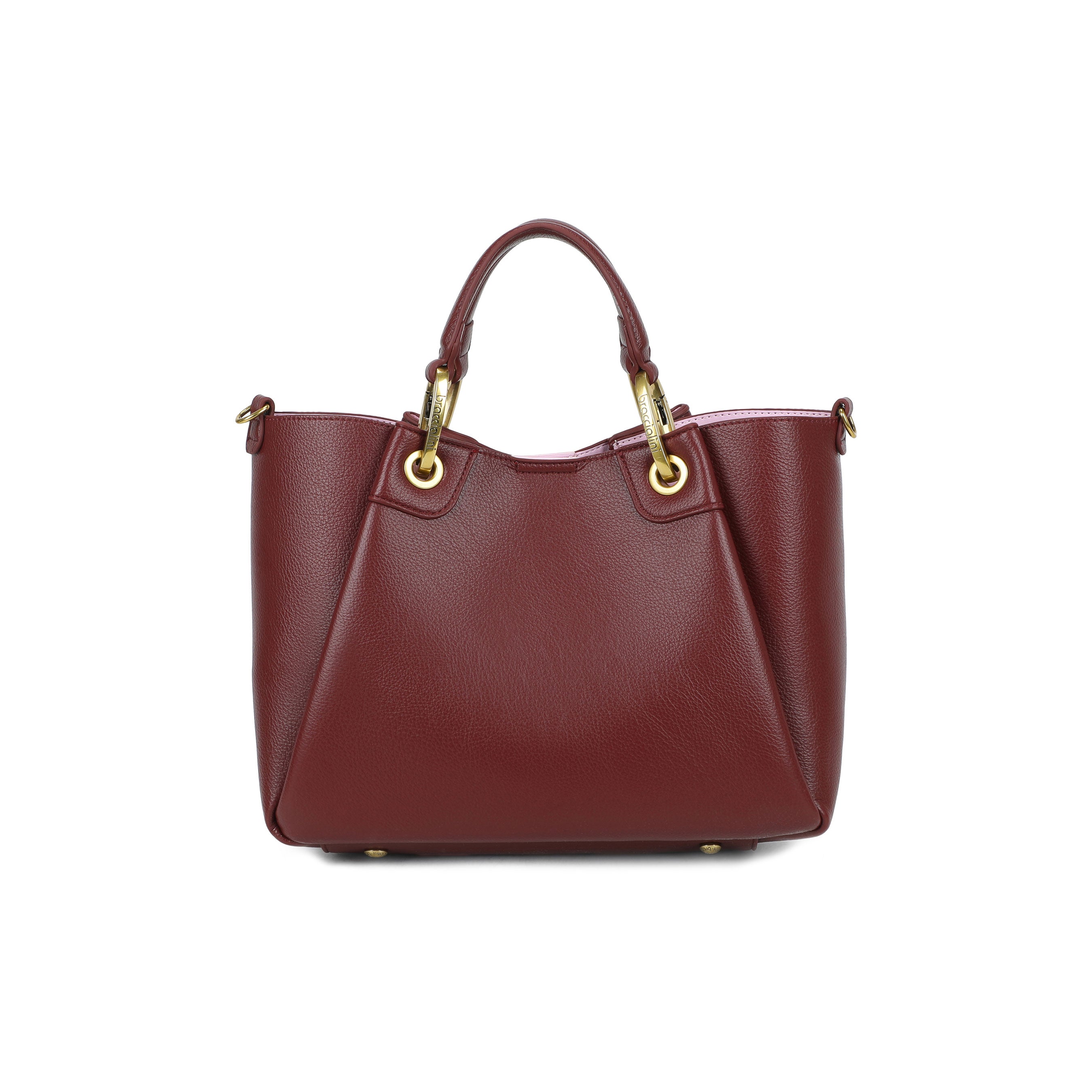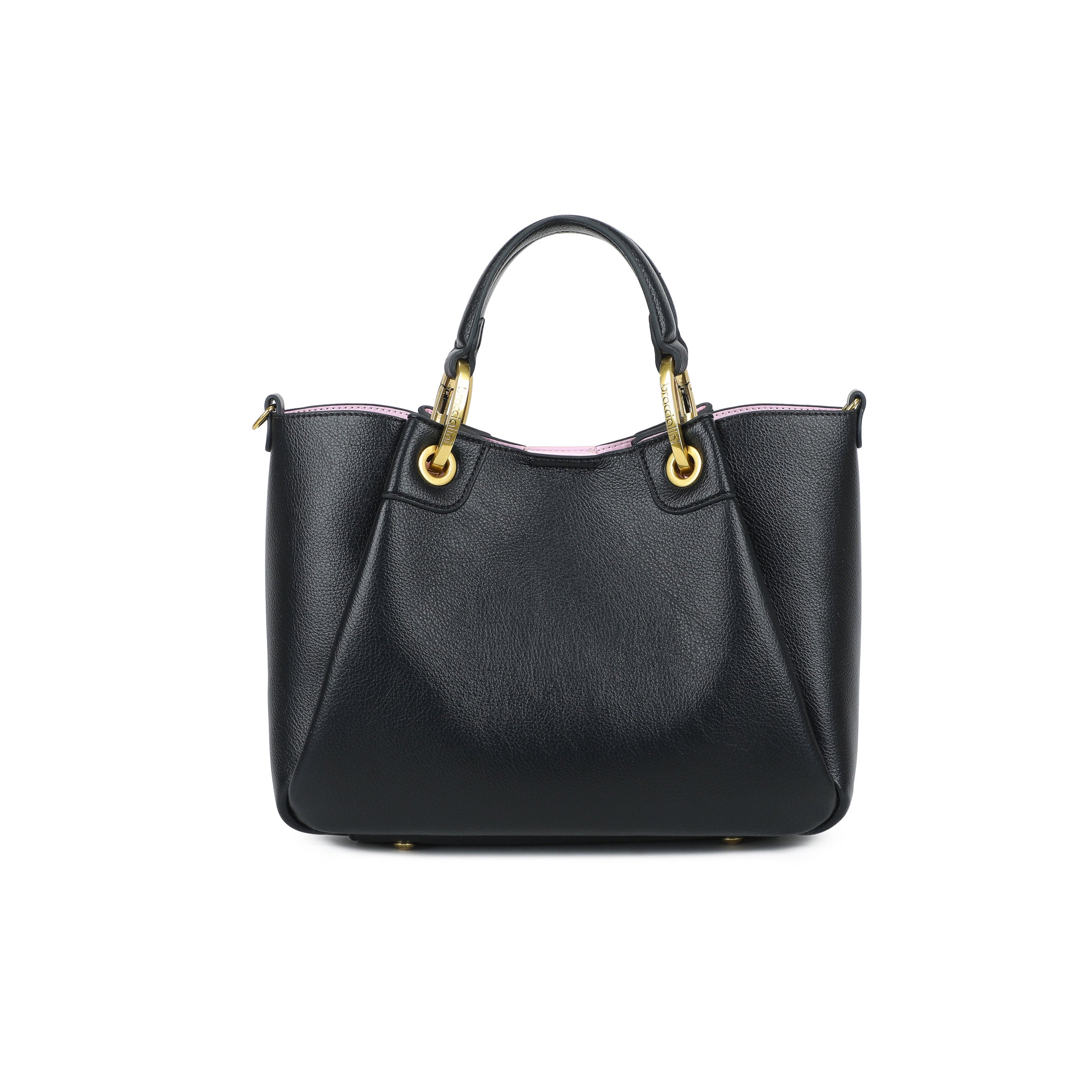 Realizzata in similpelle di alta qualità, presenta un interno a contrasto che valorizza l’eleganza del modello. Inclusa una pochette estraibile e una tracolla regolabile e removibile in nastro logato, per indossarla sia a mano che a spalla, garantendo massima versatilità.