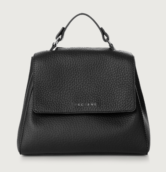 The Orciani Nero B01999SOF-NER small Sveva leather bag, with shoulder strap, is a symbol of refinement and functionality. Crafted from authentic Italian pebbled leather, this durable and luxurious accessory is designed to be both a handbag and a shoulder bag. It offers the versatility desired in every fashion accessory.