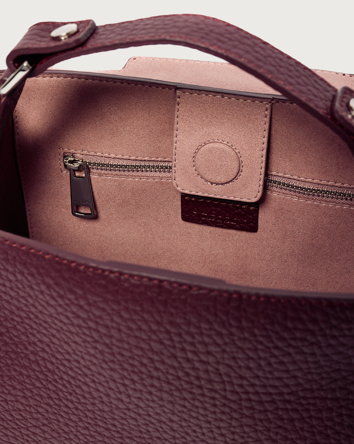 Magnetic button closure offers additional security and convenience. The details in polished nickel finish add a touch of elegance, while the 'Made in Italy' brand guarantees quality and craftsmanship.
