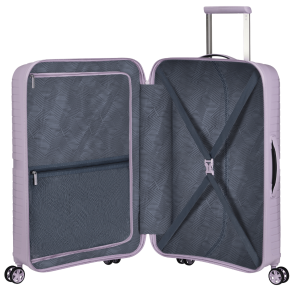 Scopri il pratico trolley, ideale per i viaggi in aereo grazie alle dimensioni compatibili con le principali compagnie aeree. Realizzato in polipropilene leggero e ultra resistente, questo bagaglio garantisce massima durata e protezione. Dotato di chiusura a combinazione a 3 cifre con funzione TSA, offre sicurezza aggiuntiva per i viaggi internazionali. Le 4 ruote piroettanti assicurano una mobilità fluida a 360°, mentre la maniglia superiore e l’organizzazione interna con divisorio e cinghie ferma abiti rendono il tuo viaggio ancora più comodo e ordinato. Il compagno perfetto per ogni tipo di spostamento.