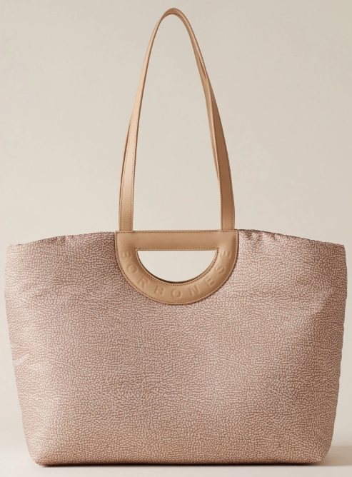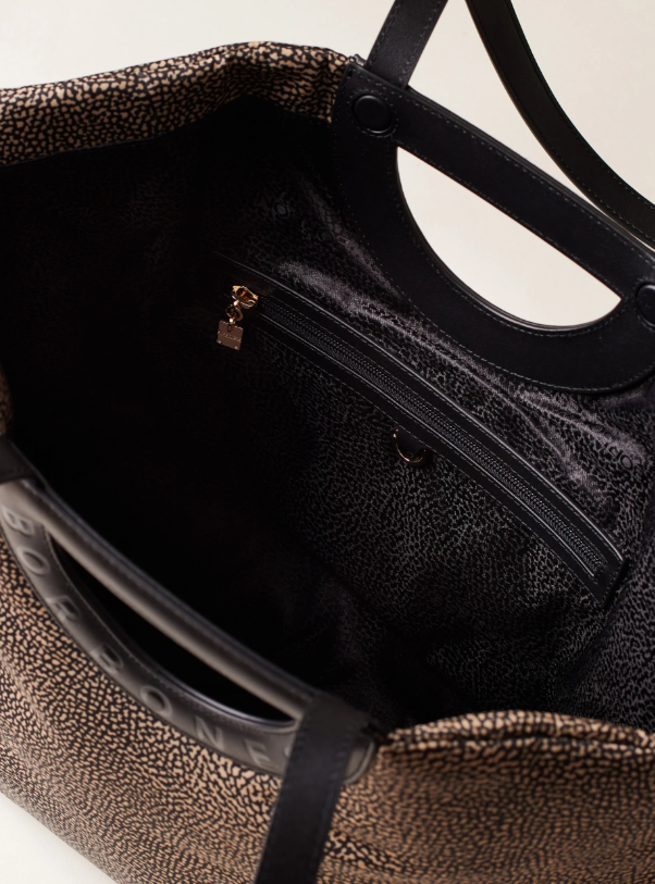La borsa Bouche Large di Borbonese è il perfetto mix tra eleganza, comfort e funzionalità. Caratterizzata da una particolare impugnatura ispirata alla forma di una staffa, questa borsa rappresenta il segno distintivo della linea Bouche, sinonimo di personalità e stile senza tempo.