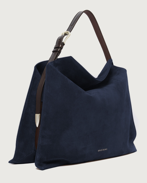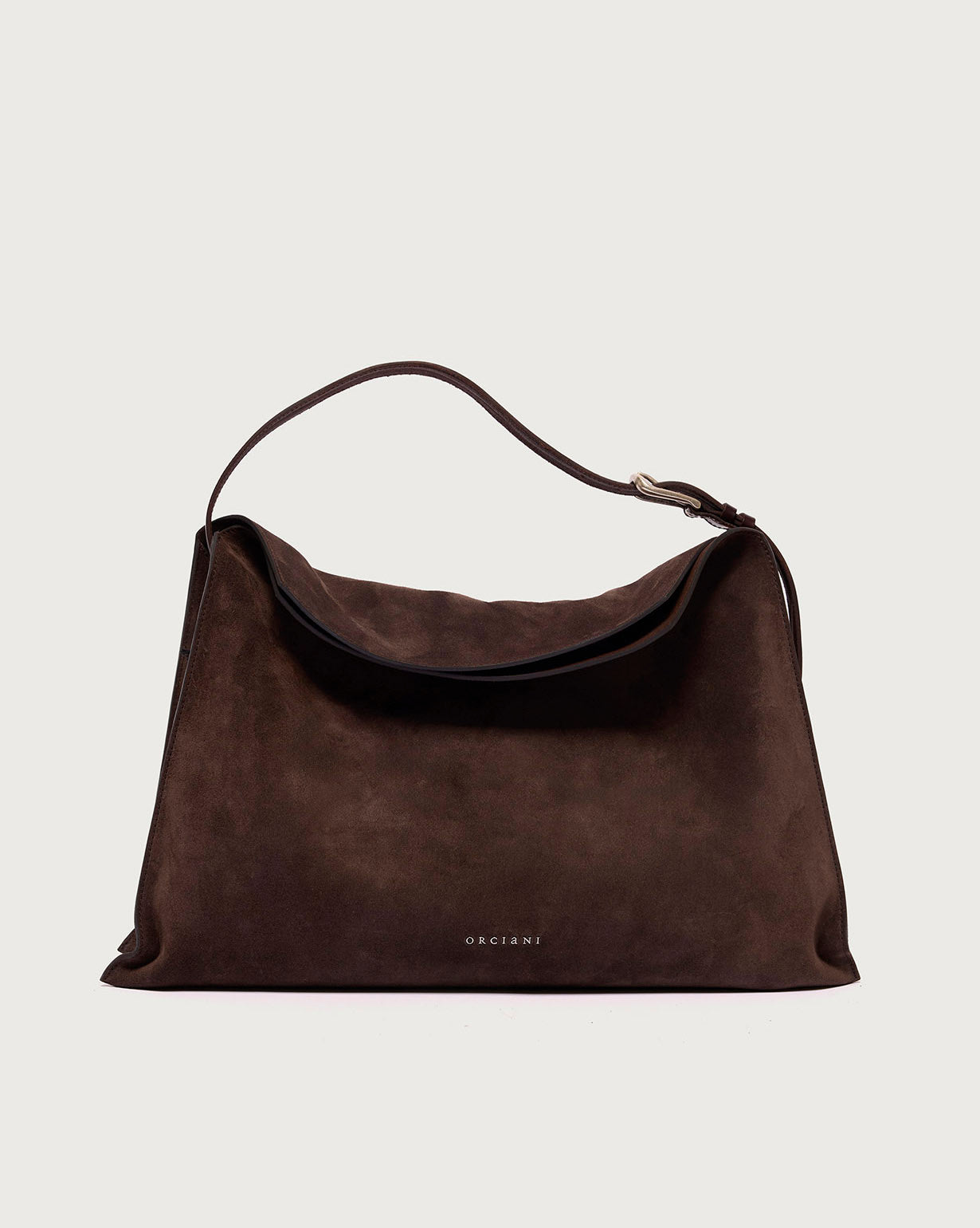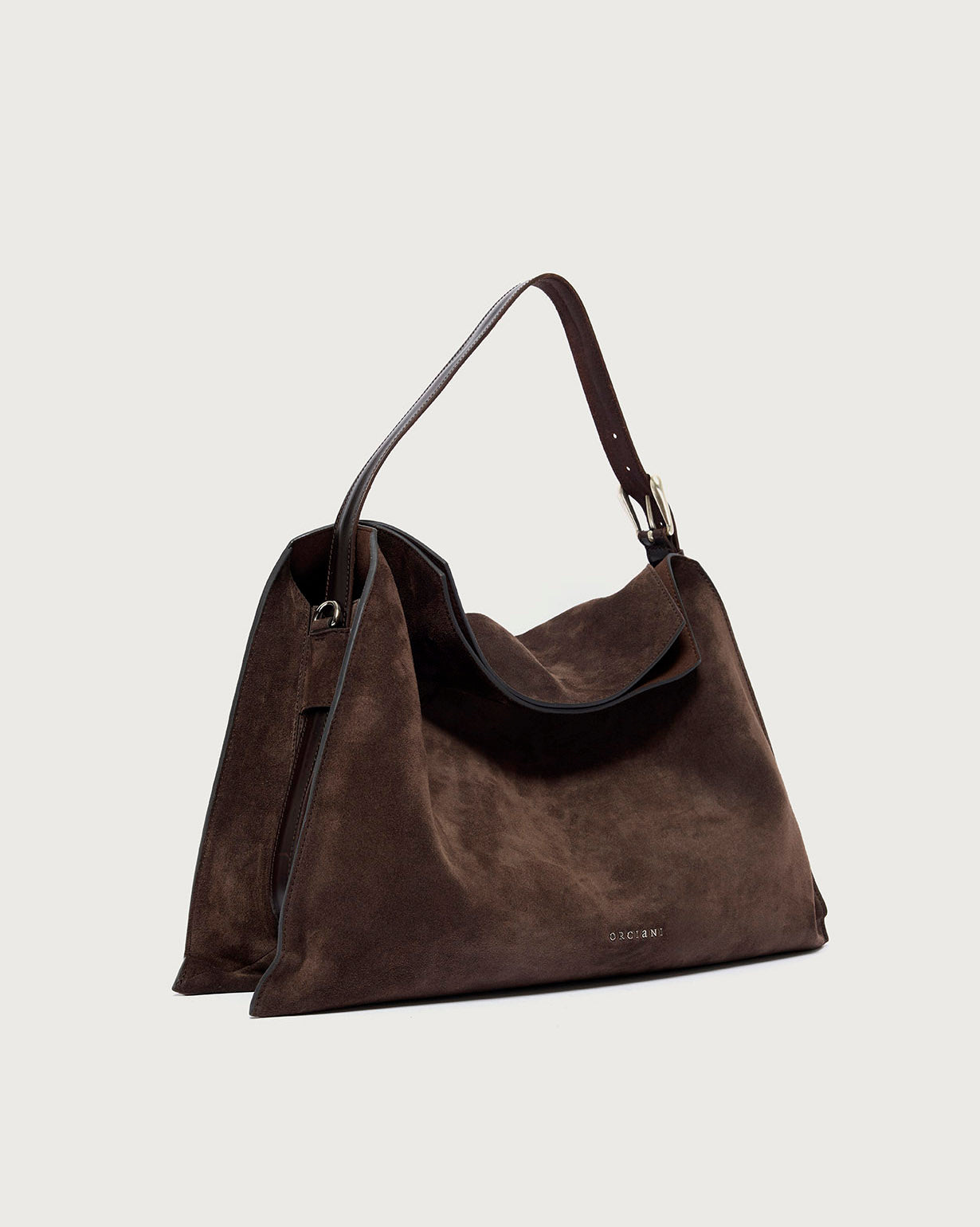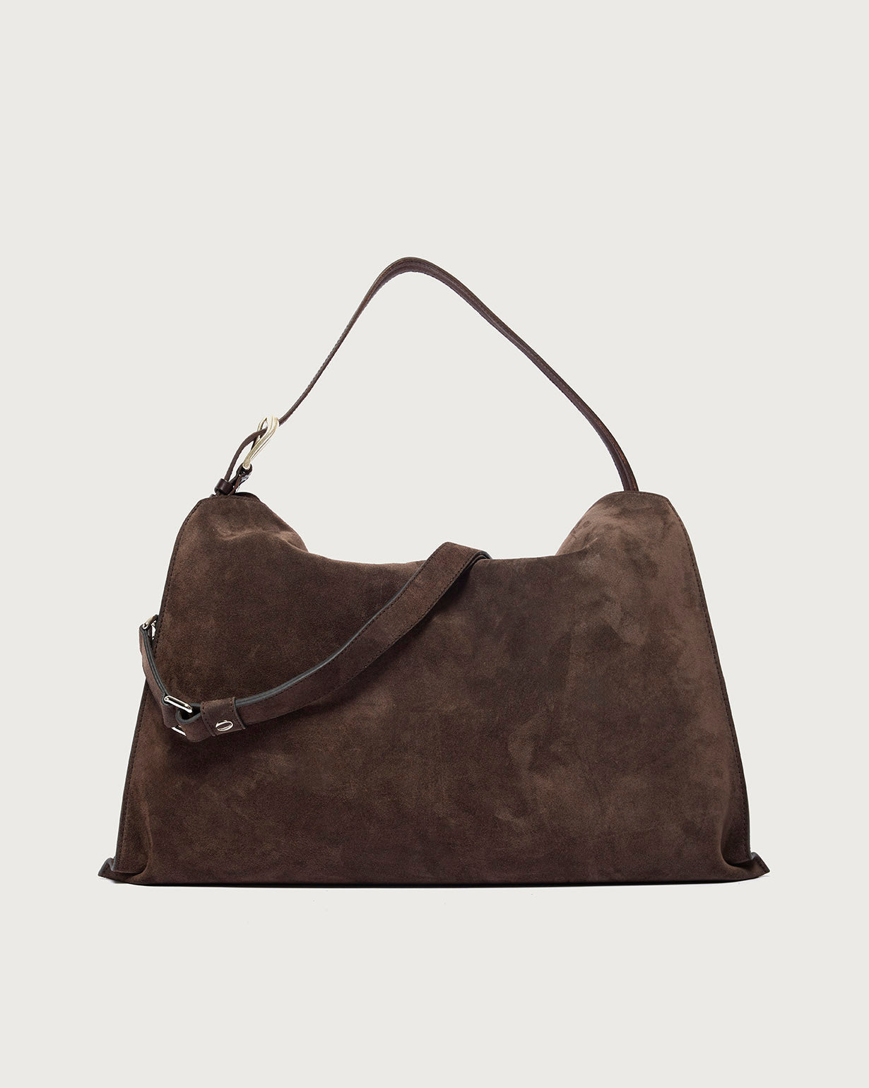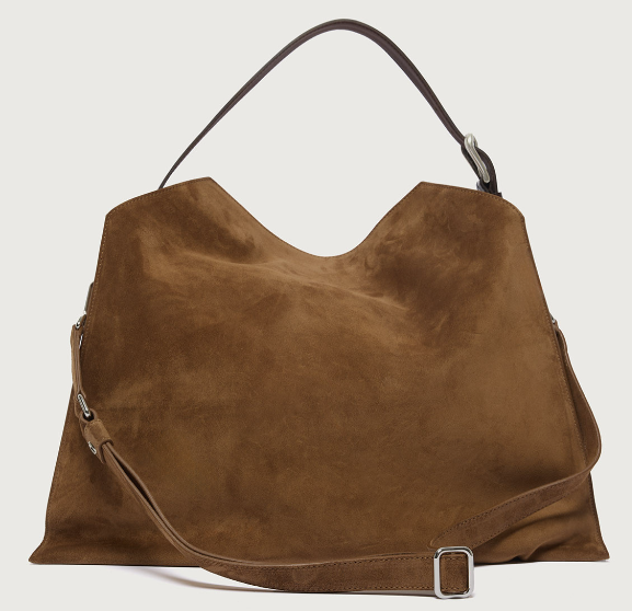 Trinity Peach Large è la versione più spaziosa della famiglia Trinity, realizzata in morbido suede e cuoio. Le sue linee ampie e sinuose la rendono la compagna ideale per l’intera giornata: capiente, sofisticata e inconfondibile.