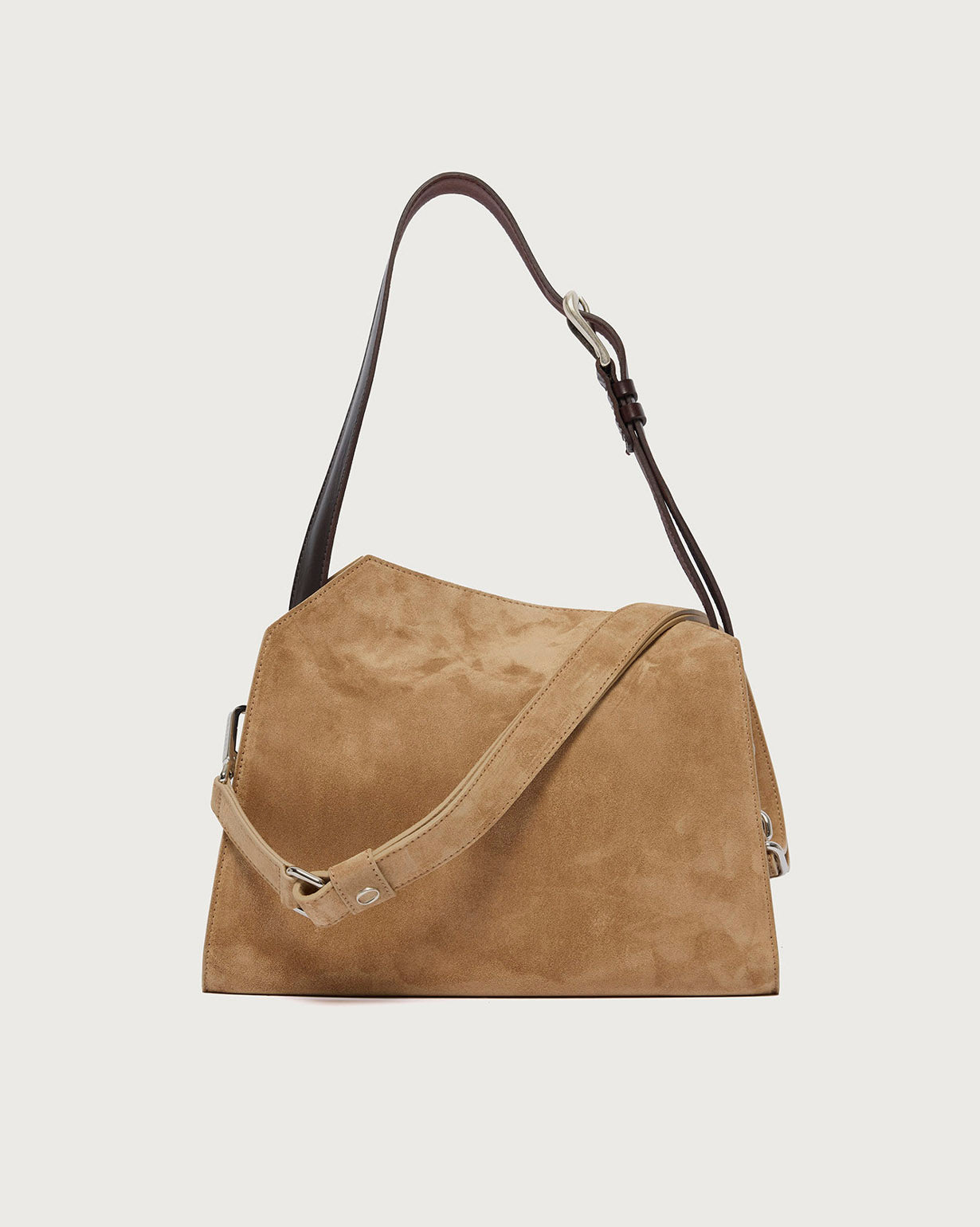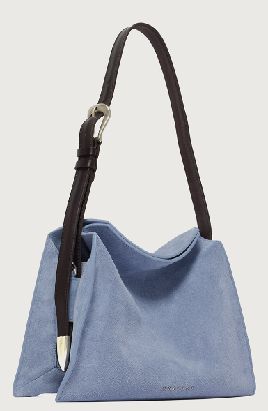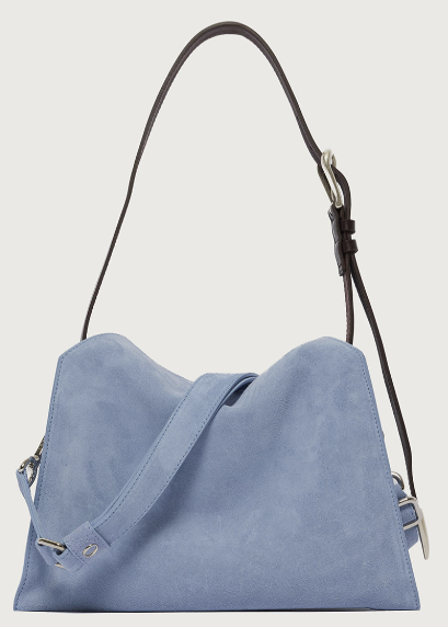 La Trinity Peach Small è una borsa a spalla realizzata in suede e cuoio, compatta ma capiente, perfetta per accompagnarti con stile in ogni momento della giornata.