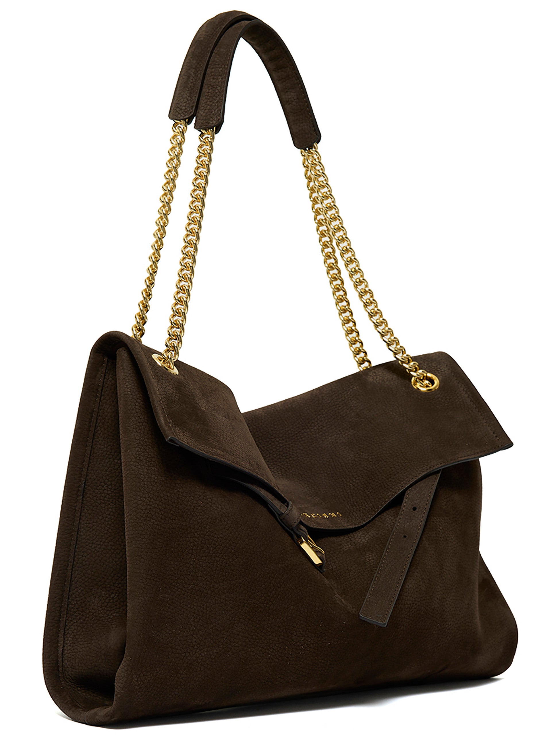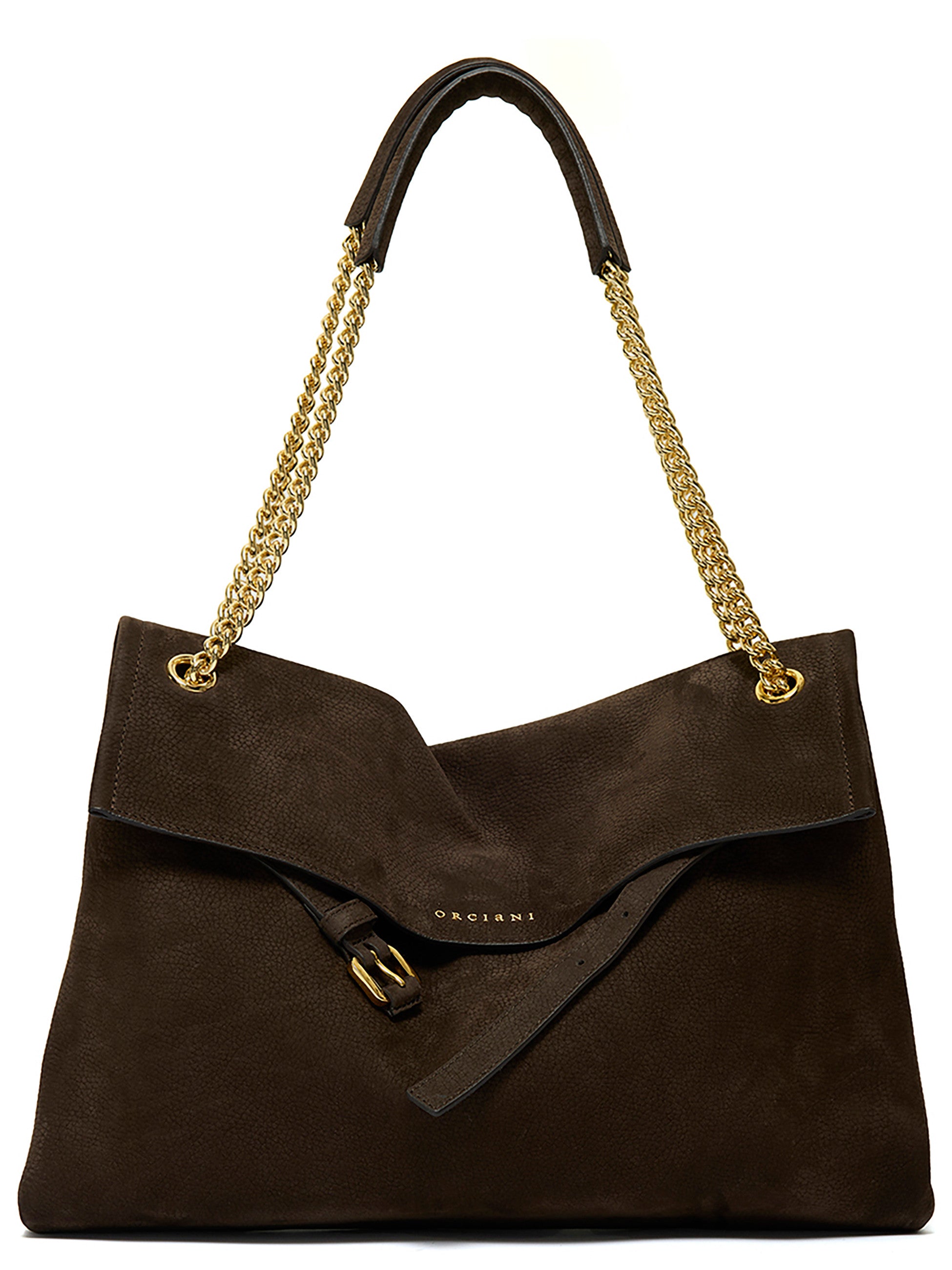 La borsa Venus firmata Orciani è un’icona di stile che unisce tradizione e innovazione. Le sue forme morbide e il design strutturato raccontano una continuità tra passato e futuro, mentre i dettagli moderni – come la cintura slacciata, la forma allungata e la tracolla in catena – donano un tocco contemporaneo e raffinato.