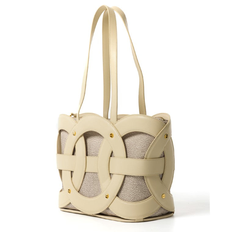 Scopri la borsa Borbonese All Round, un modello raffinato dal design esclusivo, ispirato alla vite, simbolo distintivo del brand. La sua struttura intrecciata richiama l’arte artigianale italiana, unendo stile, funzionalità e sostenibilità.