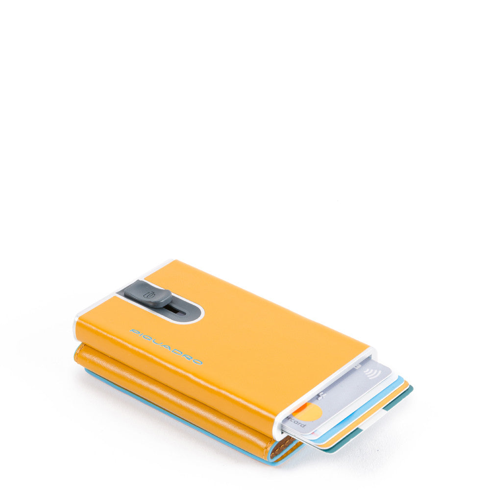 La collezione Blue Square è realizzata in vitello con conciatura minerale. Il sistema tradizionale di concia mantiene inalterata la bellezza della pelle negli anni. I bordi a taglio vivo, dipinti a mano in azzurro, vivacizzano il carattere business della collezione e rappresentano un elemento distintivo di grande riconoscibilità.