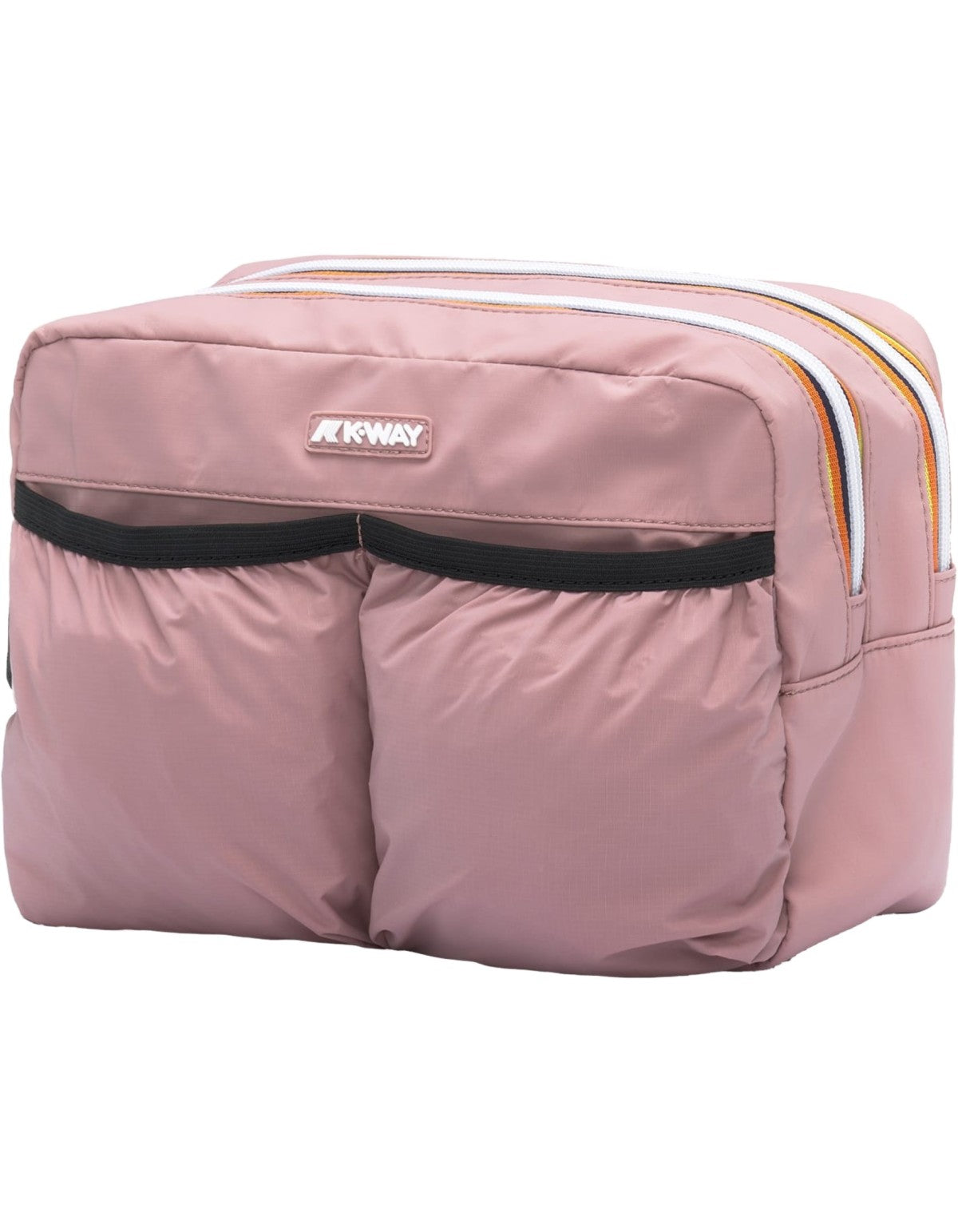 Il design è studiato per offrire spazio e organizzazione ottimale: doppio scomparto interno, due tasche frontali elasticizzate e chiusura con doppia zip K-Way per un accesso pratico e sicuro. Il manico laterale in nastro assicura una presa comoda, mentre il logo bianco in silicone aggiunge un tocco distintivo e moderno.