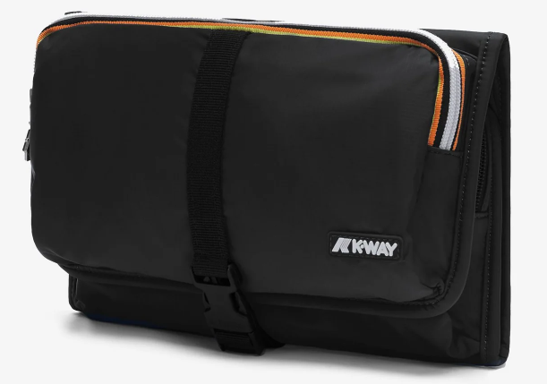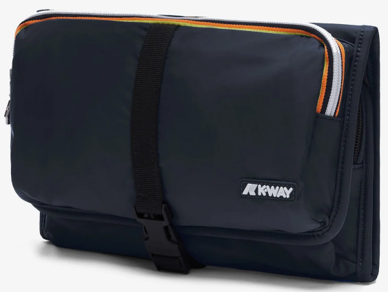 Il suo design da appendere lo rende perfetto per l’uso in bagno o in viaggio, mentre la doppia zip multicolor K-Way aggiunge un tocco iconico e dinamico. Dotato di tasche interne in rete con zip, scomparti aperti e tasca esterna, offre spazio e funzionalità ideali per ogni esigenza.