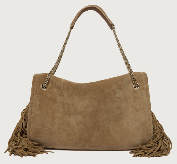 La versione Peach Fringe Midi interpreta questo equilibrio con uno spirito boho chic. Le frange in pelle scamosciata aggiungono movimento e personalità, donando alla borsa un carattere wild e sofisticato al tempo stesso. Un accessorio pensato per chi ama distinguersi con eleganza e libertà di stile.