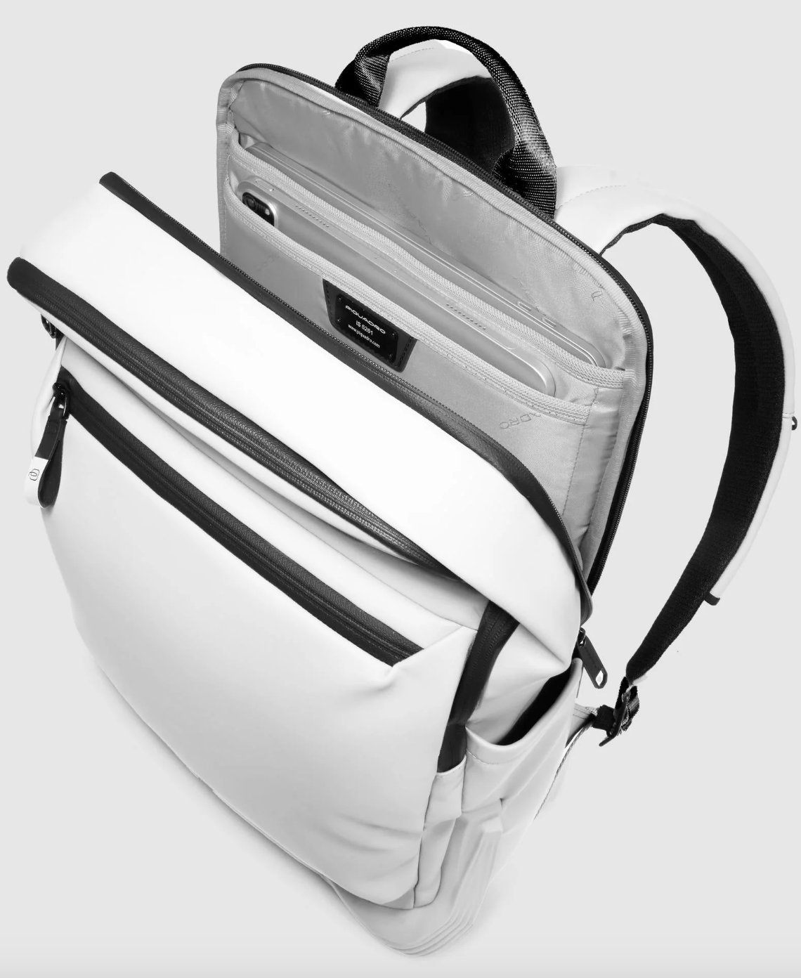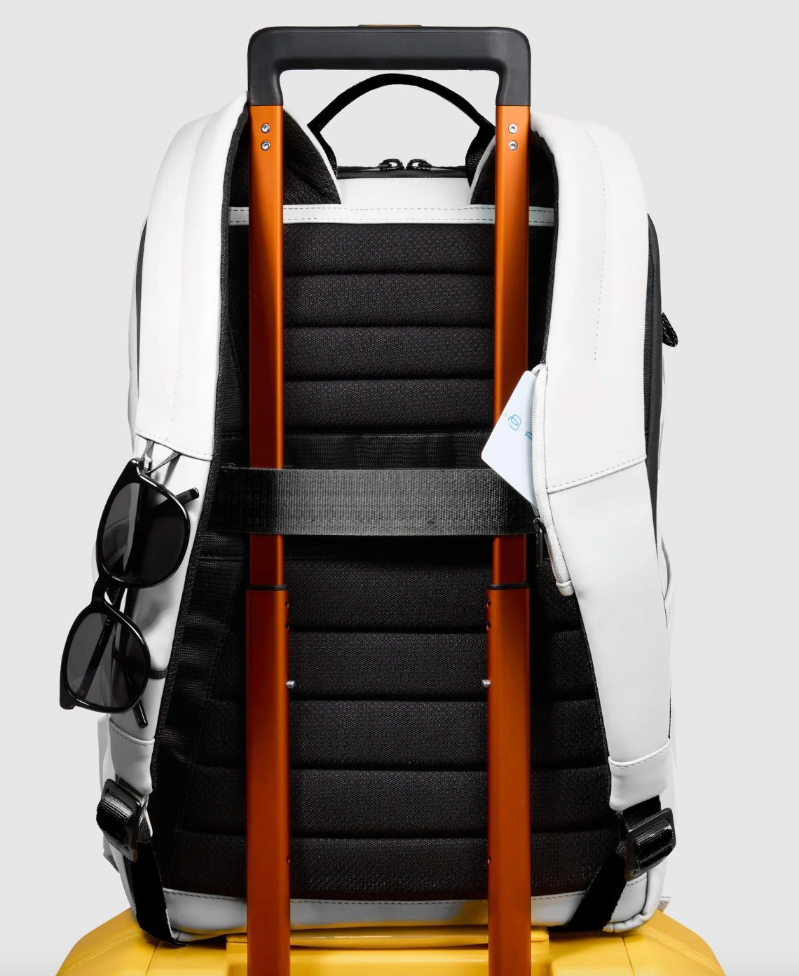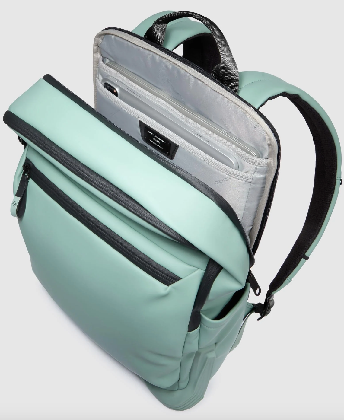 Lo zaino porta PC e iPad® a 2 scomparti in tessuto resistente all’acqua offre sicurezza e funzionalità. Con protezioni antiurto e RFID, può contenere un notebook da 14” e un iPad® fino a 11”. Dotato di tasca porta bottiglia, aggancio per luce portatile da bici, porta badge, tasche per ricarica ad induzione e power bank, è ideale per ogni avventura urbana. Leggero e compatto, con dimensioni di 32 x 40 x 16 cm e 15,5 litri di capacità