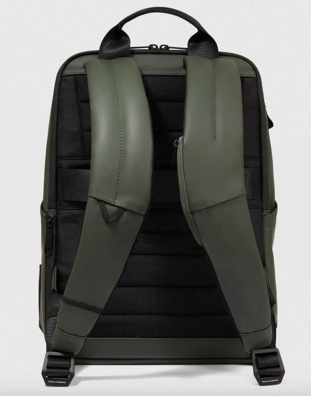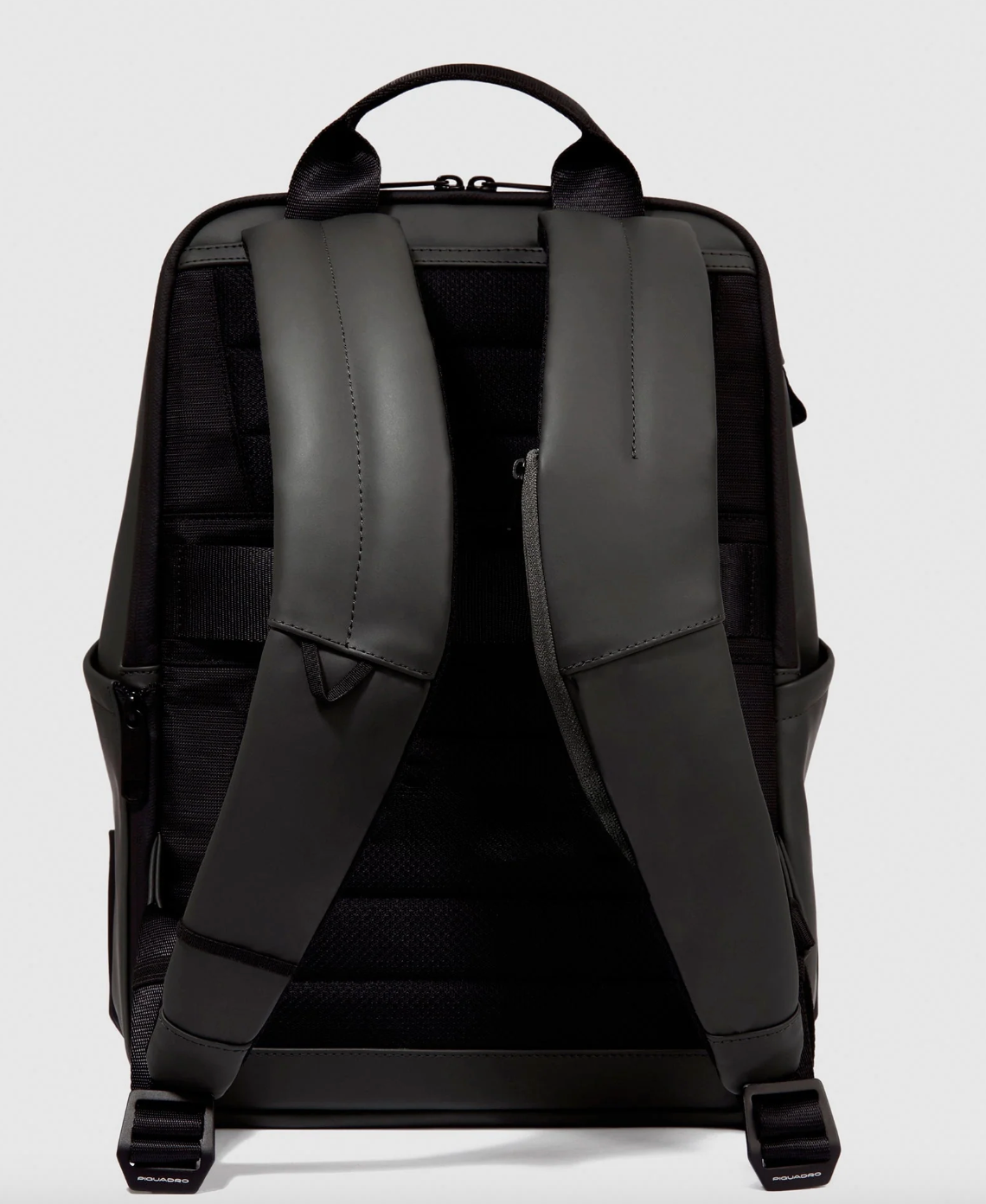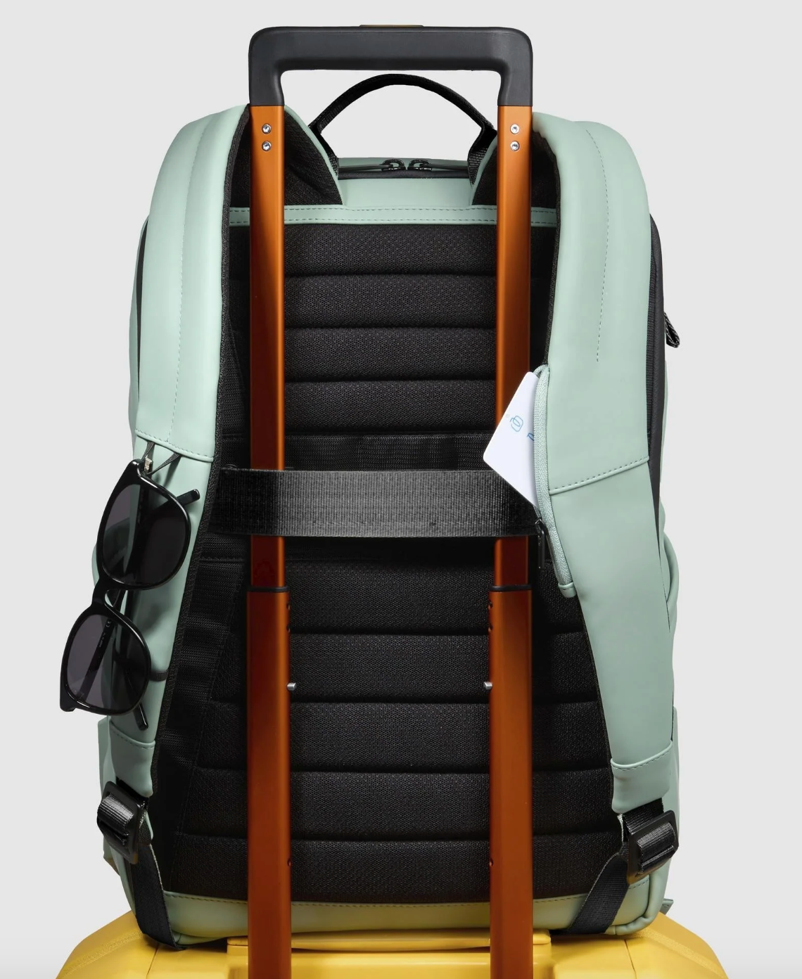 Lo zaino porta PC e iPad® a 2 scomparti in tessuto resistente all’acqua offre sicurezza e funzionalità. Con protezioni antiurto e RFID, può contenere un notebook da 14” e un iPad® fino a 11”. Dotato di tasca porta bottiglia, aggancio per luce portatile da bici, porta badge, tasche per ricarica ad induzione e power bank, è ideale per ogni avventura urbana. Leggero e compatto, con dimensioni di 32 x 40 x 16 cm e 15,5 litri di capacità