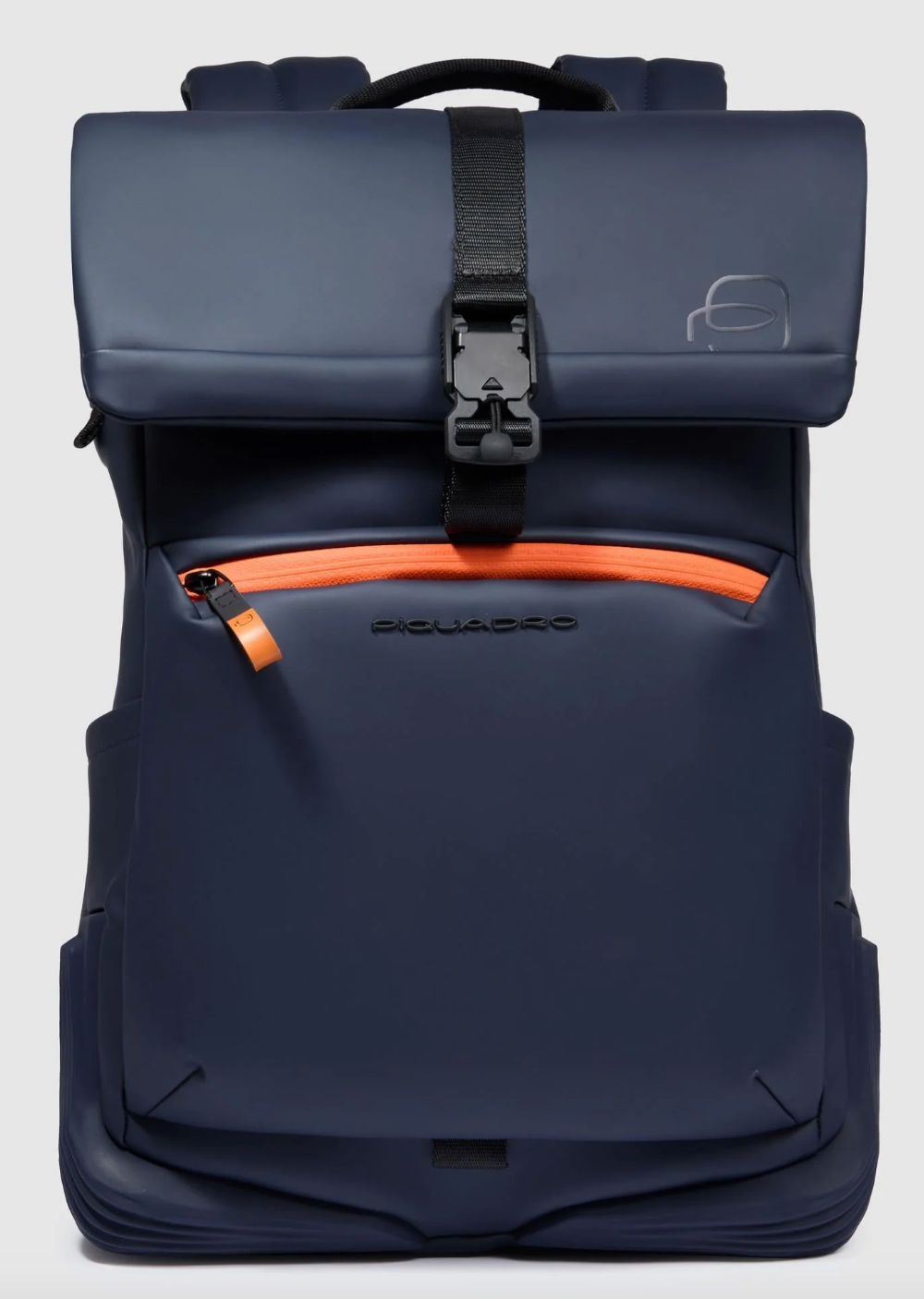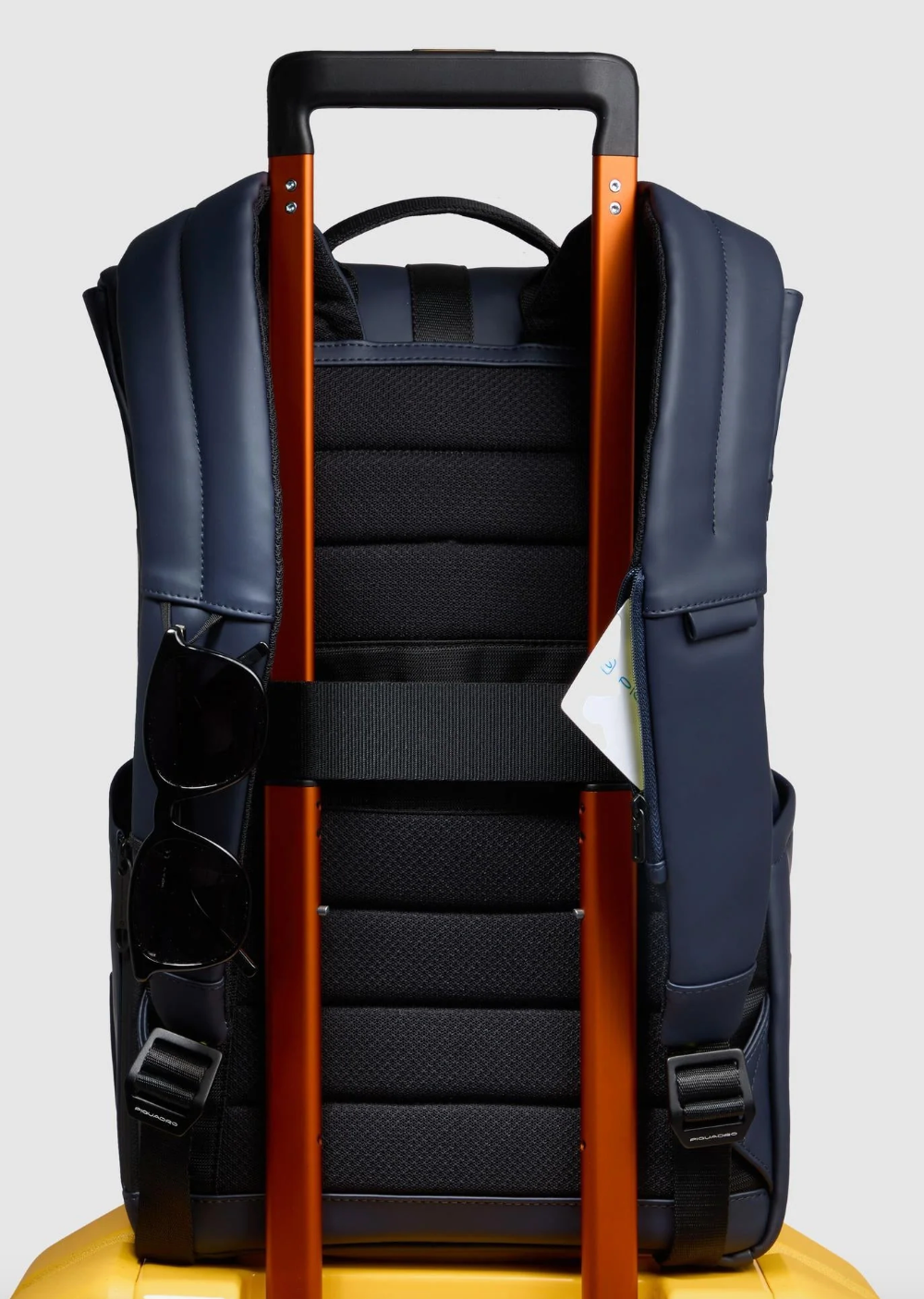 Zaino resistente all'acqua in tessuto, con protezioni antiurto e RFID. Ideale per laptop fino a 14" e iPad® fino a 11”, dotato di aggancio per luce da bici, tasca porta bottiglia, porta badge, tasca per occhiali e porta torcia. Dimensioni di 30 x 43 x 17 cm, peso di circa 1,08 kg, e capacità di 15 litri. Perfetto per affrontare ogni giornata con stile e sicurezza.